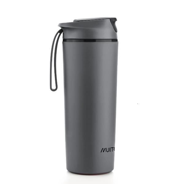 450ml thermal water bottle with non-slip handle, silicone strap and anti-spill suction cup system, perfect for enjoying your drinks on the go, without fear of them spilling.