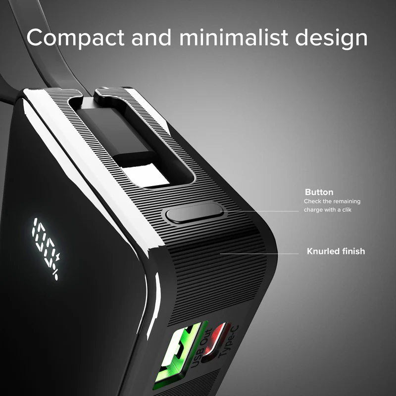 / SBS 10,000 mAh Power Bank 20W with Integrated Cable Black