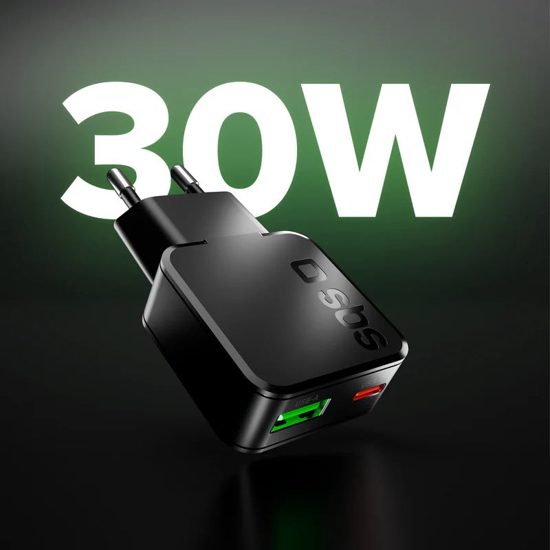 / SBS 30W Slim Travel Charger EU 1xUSB-C & 1xUSB-A Black