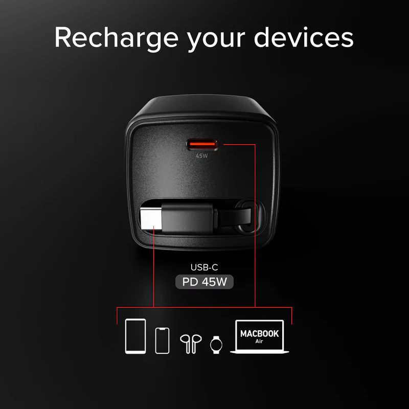 / SBS 45W GaN USB-C EU Travel Charger with Integrated Cable, Black
